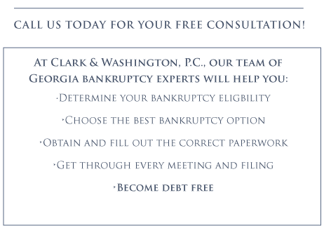 Contact Georgia law firm Clark & Washington, P.C. for bankruptcy help & get a fresh start: 770.488.9315. |